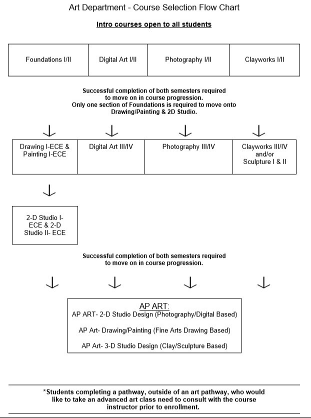 Students who wish to plan a portfolio for entrance into art schools or college art programs should notify an art teacher and/or the art department chairperson.