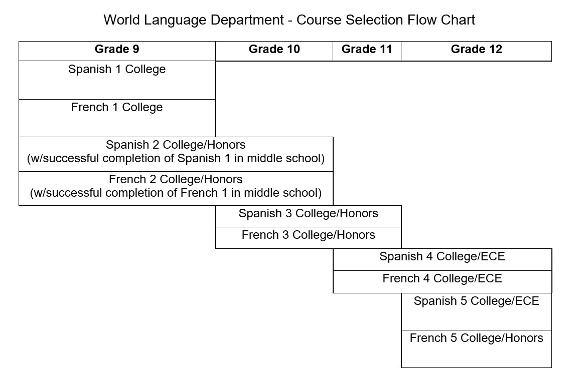 Department expectations: For success in all languages and at all levels, students should be prepared daily. They are expected to actively participate in all aspects of class (listening, speaking, reading, writing, and cultural studies) as appropriate to their target language.